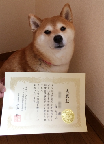 無事故の柴犬の表彰を受けました(^o^)/